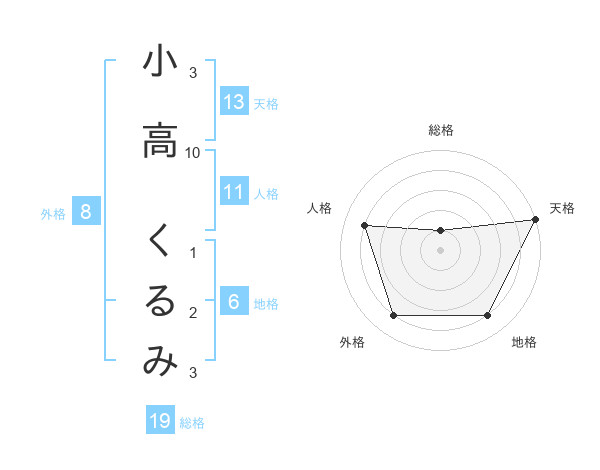 小高 くるみさんの天格は13画の5点!
