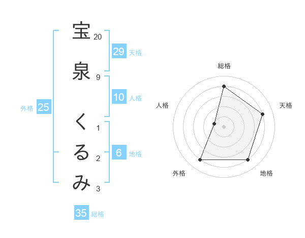 宝泉 くるみさんの総格は35画の4点!