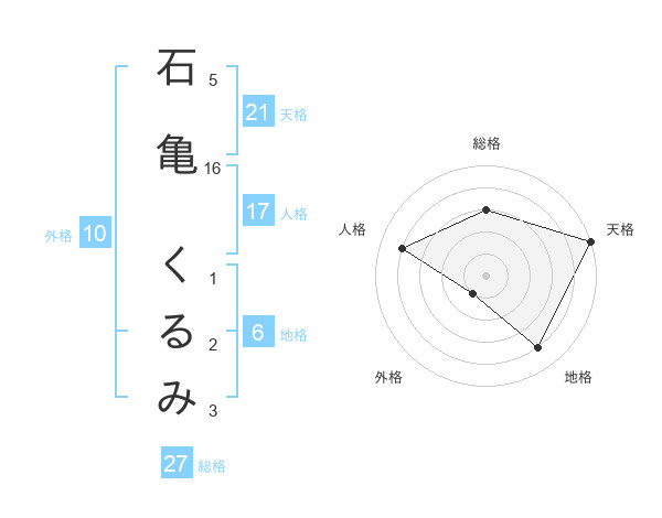 石亀 くるみさんを姓名の画数から五運を鑑定