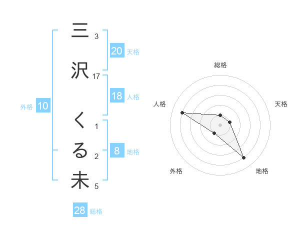 三沢 くる未さんを姓名の画数から五運を鑑定