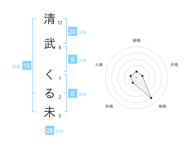 清武 くる未さんの地格は8画の4点