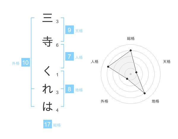 三寺 くれはさんを姓名の画数から五運を鑑定