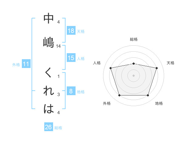 中嶋 くれはさんを姓名の画数から五運を鑑定