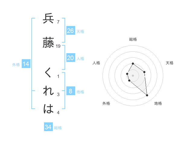 兵藤 くれはさんを姓名の画数から五運を鑑定