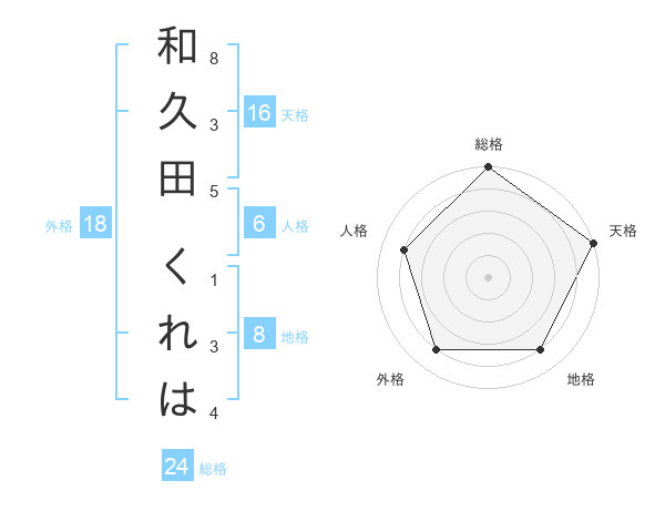 和久田 くれはさんを姓名の画数から五運を鑑定