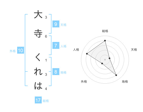 大寺 くれはさんを姓名の画数から五運を鑑定