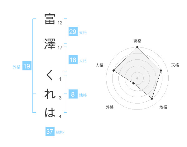富澤 くれはさんを姓名の画数から五運を鑑定
