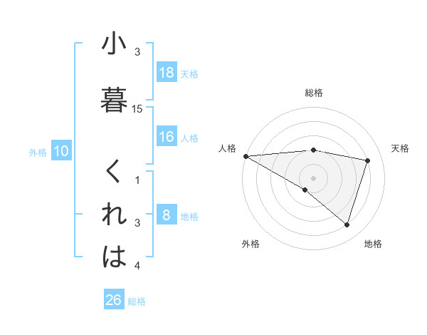 小暮 くれはさんを姓名の画数から五運を鑑定