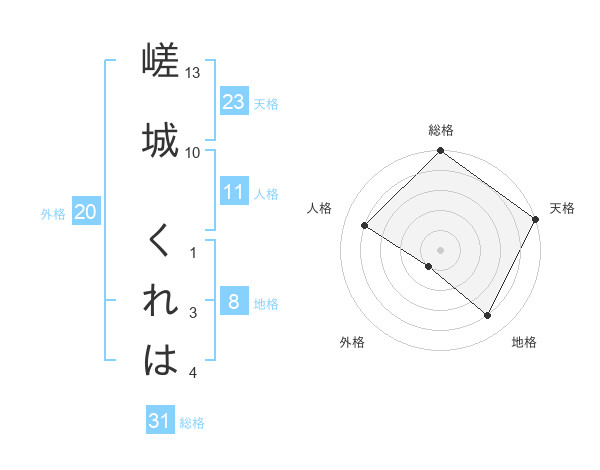 嵯城 くれはさんを姓名の画数から五運を鑑定
