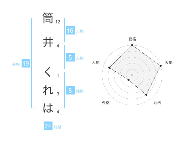 筒井 くれはさんを姓名の画数から五運を鑑定