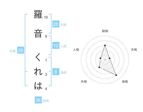 羅音 くれはさんの天格は28画の1点!