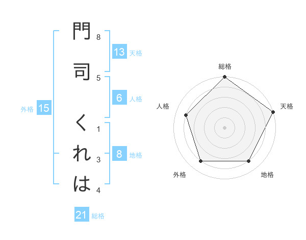 門司 くれはさんの総格は21画の5点!