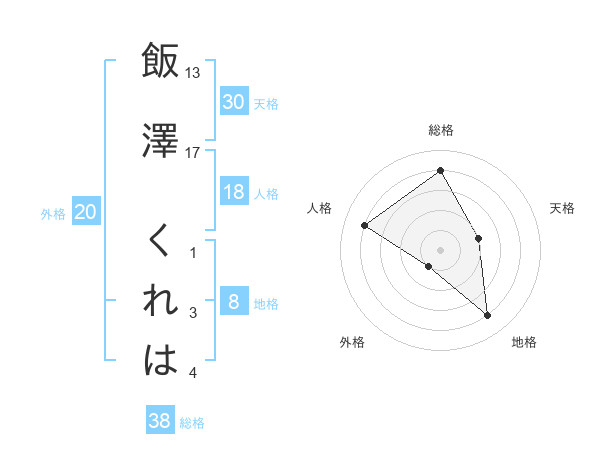 飯澤 くれはさんを姓名の画数から五運を鑑定