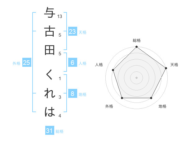 与古田 くれはさんを姓名の画数から五運を鑑定