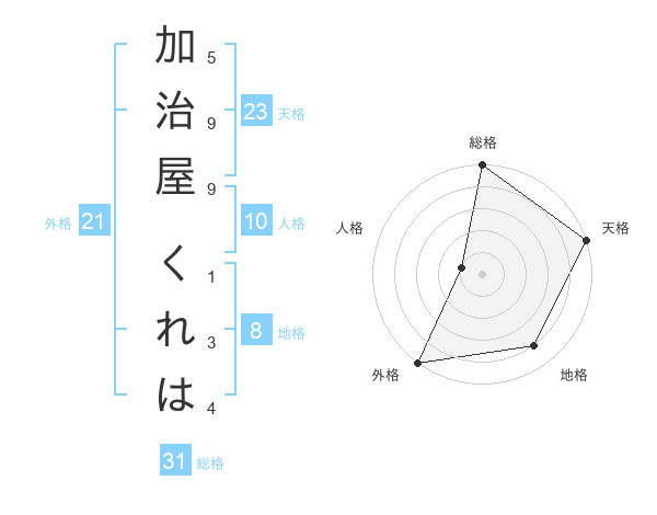 加治屋 くれはさんを姓名の画数から五運を鑑定