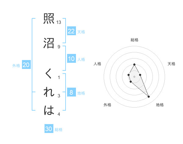 照沼 くれはさんの総格は30画の2点!