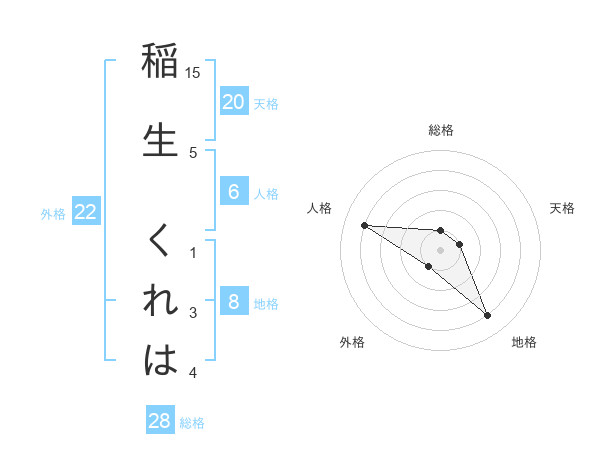 稲生 くれはさんの総格は28画の1点!