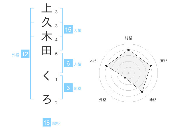 上久木田 くろさんの天格は15画の4点!