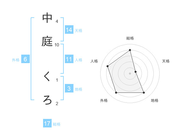 中庭 くろさんの総格は17画の4点!