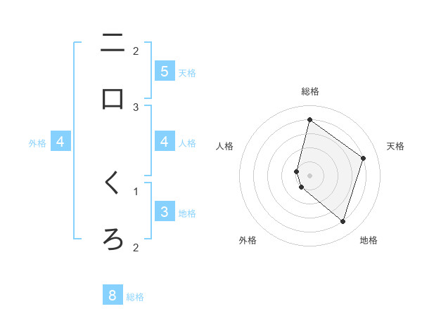 二口 くろさんの天格は5画の4点!