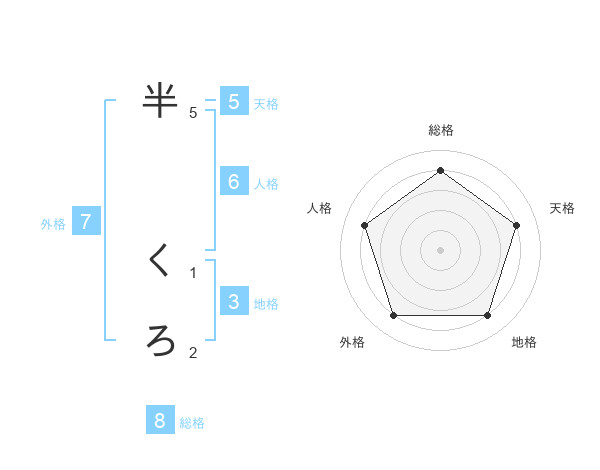 半 くろさんの総格は8画の4点!