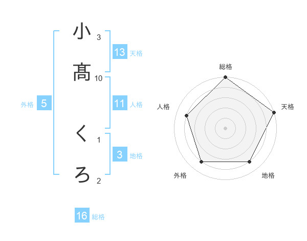 小髙 くろさんの天格は13画の5点!