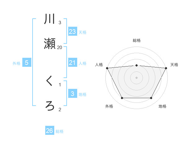川瀬 くろさんの天格は23画の5点!