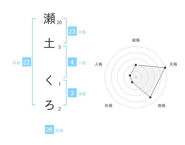 瀬土 くろさんの天格は23画の5点!