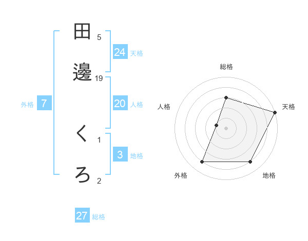 田邊 くろさんの総格は27画の3点!