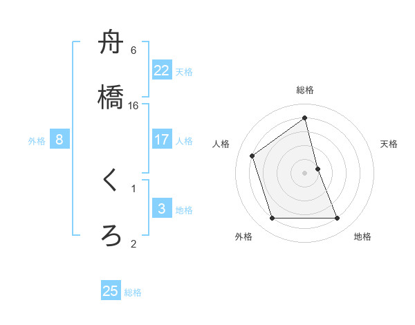 舟橋 くろさんを姓名の画数から五運を鑑定