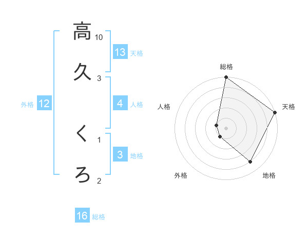 高久 くろさんの天格は13画の5点!
