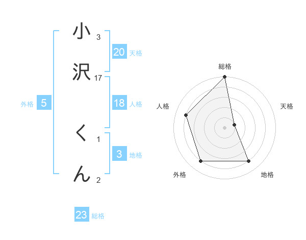 小沢 くんさんの総格は23画の5点!