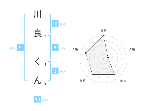 川良 くんさんの総格は13画の5点!