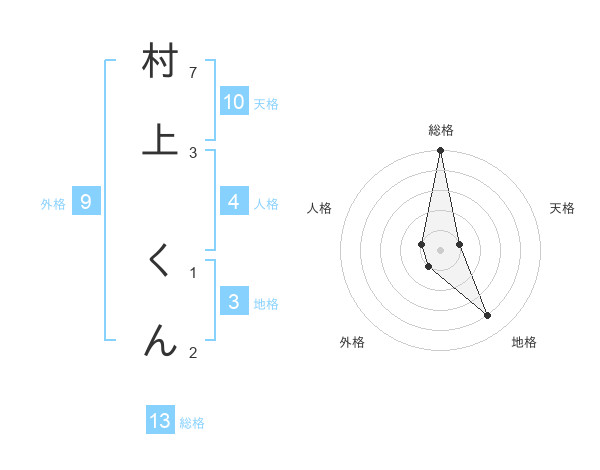 村上 くんさんの総格は13画の5点!