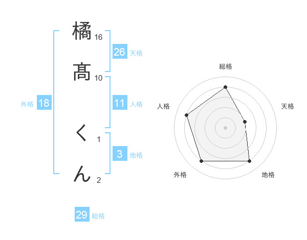 橘髙 くんさんを姓名の画数から五運を鑑定