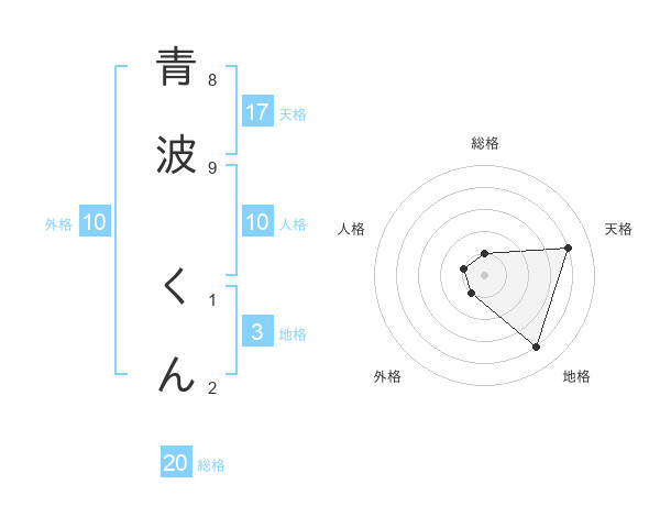 青波 くんさんの天格は17画の4点!