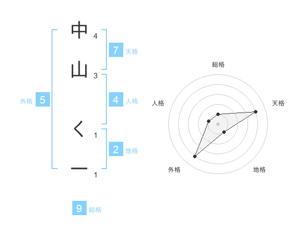 中山 くーさんの天格は7画の4点!