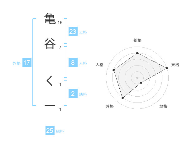 亀谷 くーさんの総格は25画の4点!