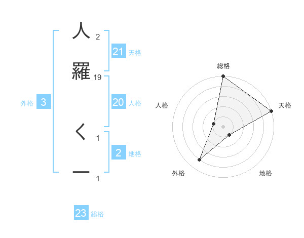 人羅 くーさんの総格は23画の5点!