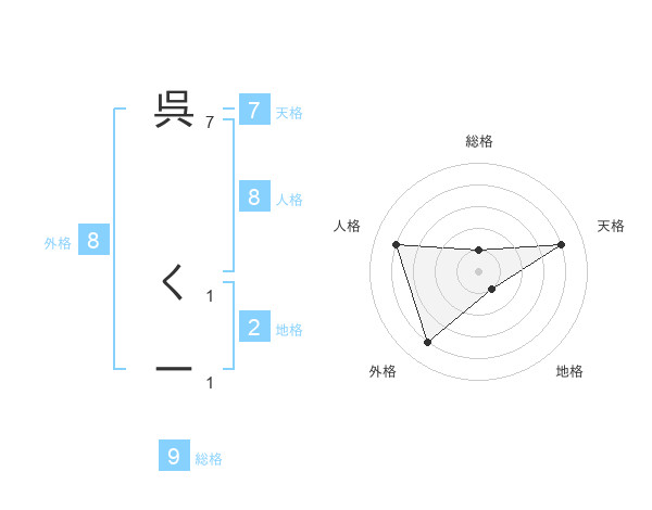 呉 くーさんの外格は8画の4点!