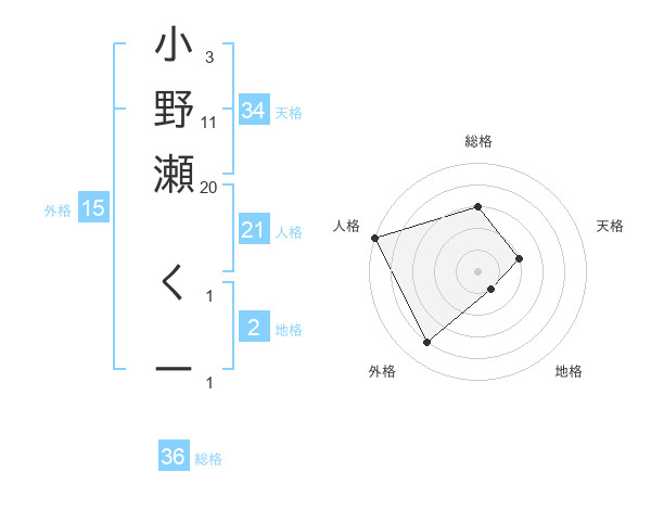 小野瀬 くーさんを姓名の画数から五運を鑑定