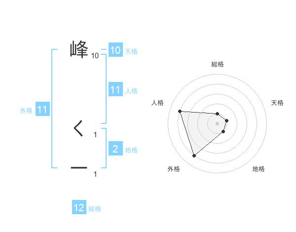 峰 くーさんの総格は12画の1点!