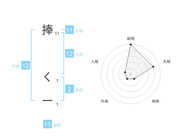捧 くーさんの総格は13画の5点!