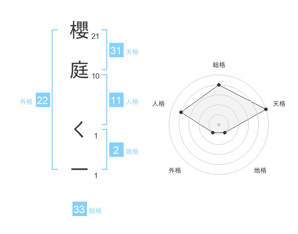 櫻庭 くーさんを姓名の画数から五運を鑑定