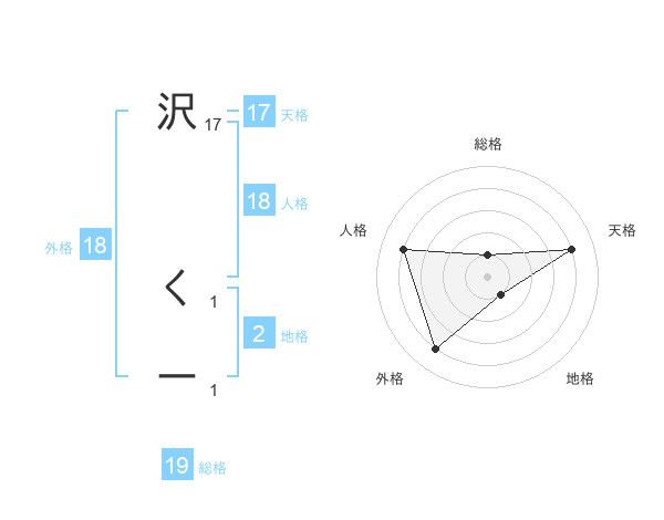 沢 くーさんの天格は17画の4点!