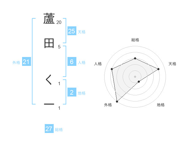蘆田 くーさんを姓名の画数から五運を鑑定