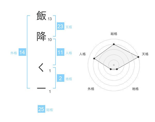 飯降 くーさんの総格は25画の4点!