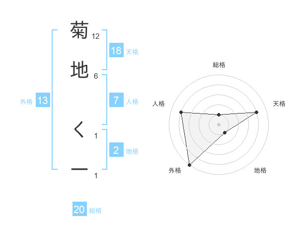 菊地 くーさんの外格は13画の5点!