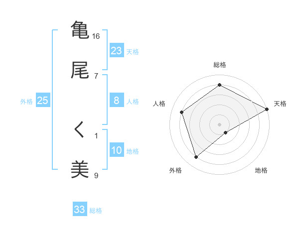 亀尾 く美さんの総格は33画の4点!