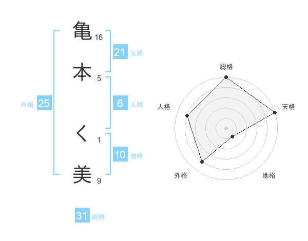 亀本 く美さんの総格は31画の5点!
